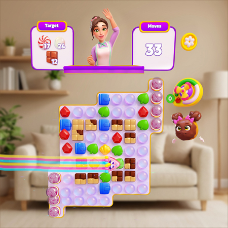 Use powerful boosters like Hammer, Unicorn, or Space Kitty, and create epic combos to pass match-3 puzzles with the best results!